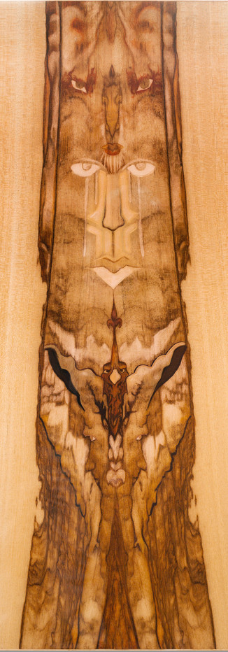 xities of death. The symmetry in the wood shows reflections of worldly things we know and see in everyday life, showing we are all from the same patterns. I believe trees have souls and record information while they are growing. I also believe trees, nature and spirits have something to say. Currently I am focussed on what the trees are trying to teach us, warn us about, and lead us towards through interpreting their messages. This series examines important messages in wood grain. I enhance these narratives with paint, essentially reading letters from the earth. I am a creative channel to help tell their stories. My goal is to read trees from all over the world.